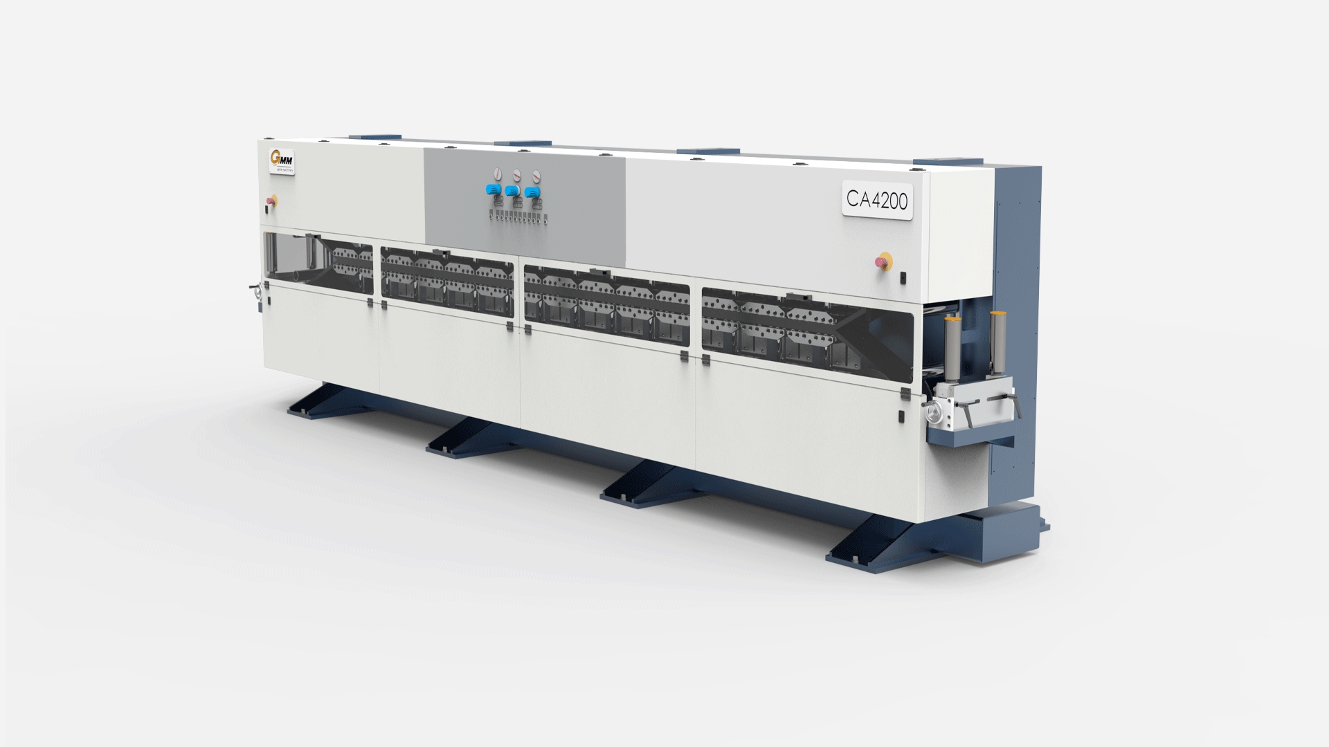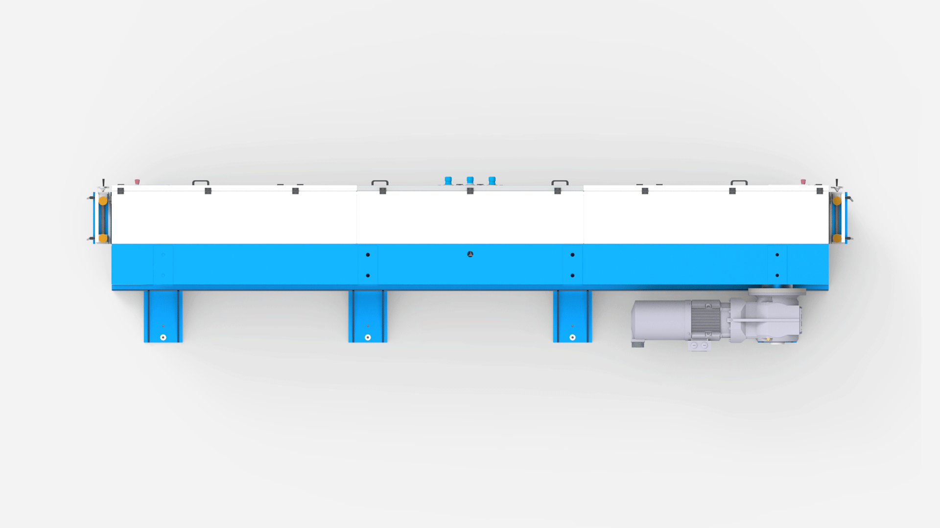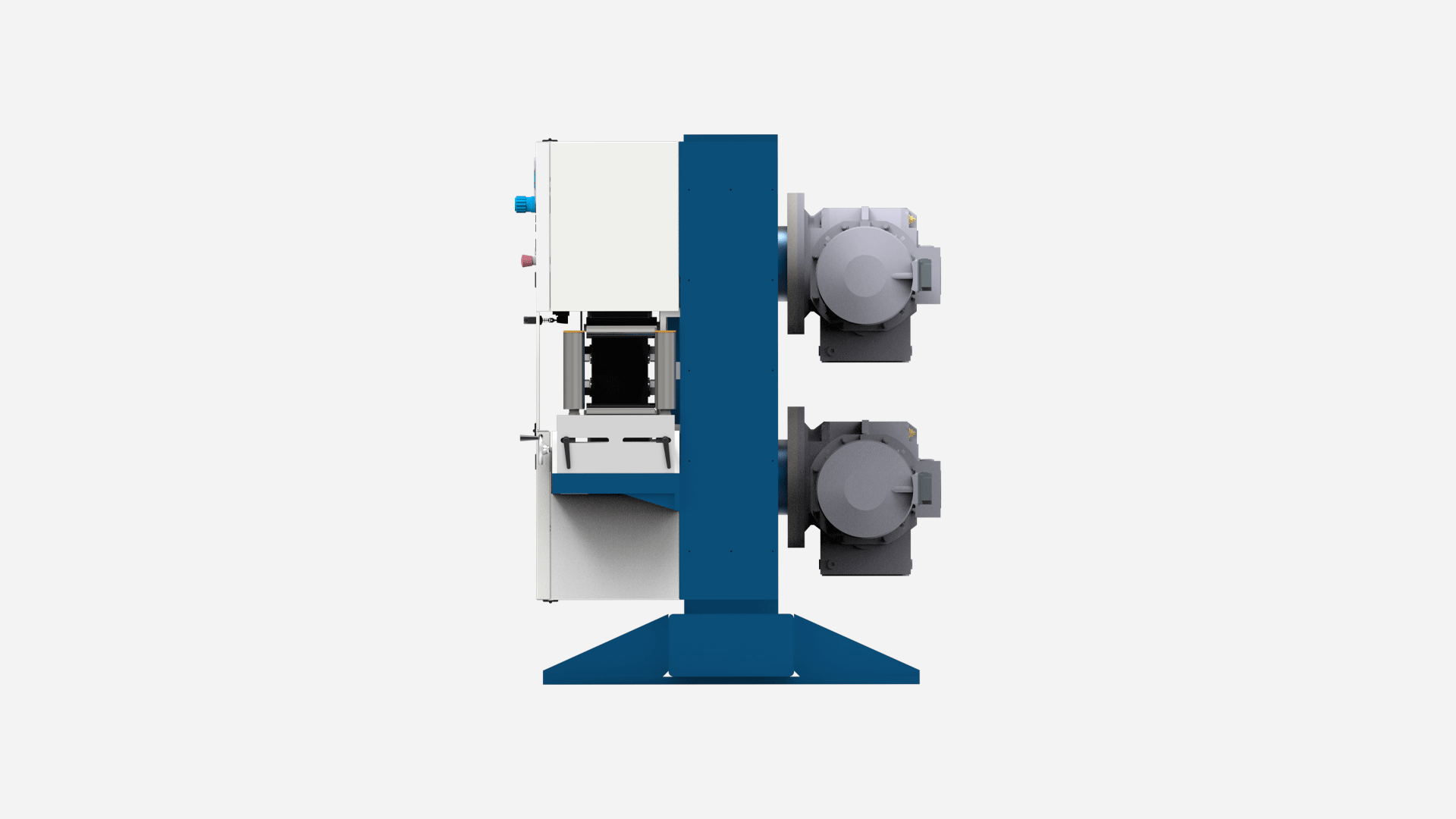 - Two pulleys are driven by two servomotors with gear reducers.
